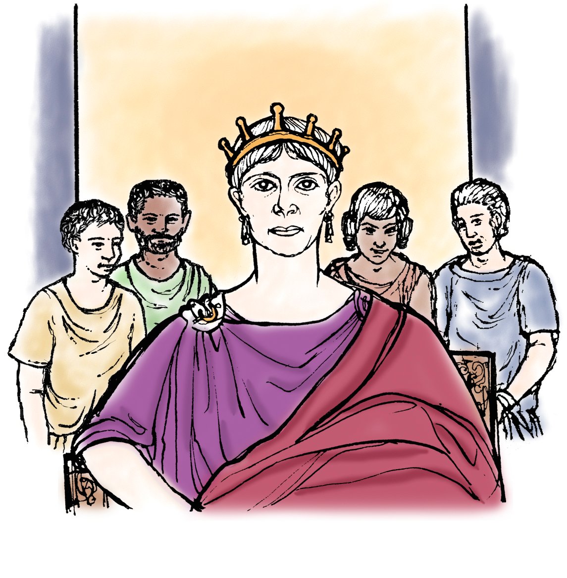 Introducing Queen Catia, who has not only a name but a stronger presence in the UK 5th edition of the Cambridge Latin Course.